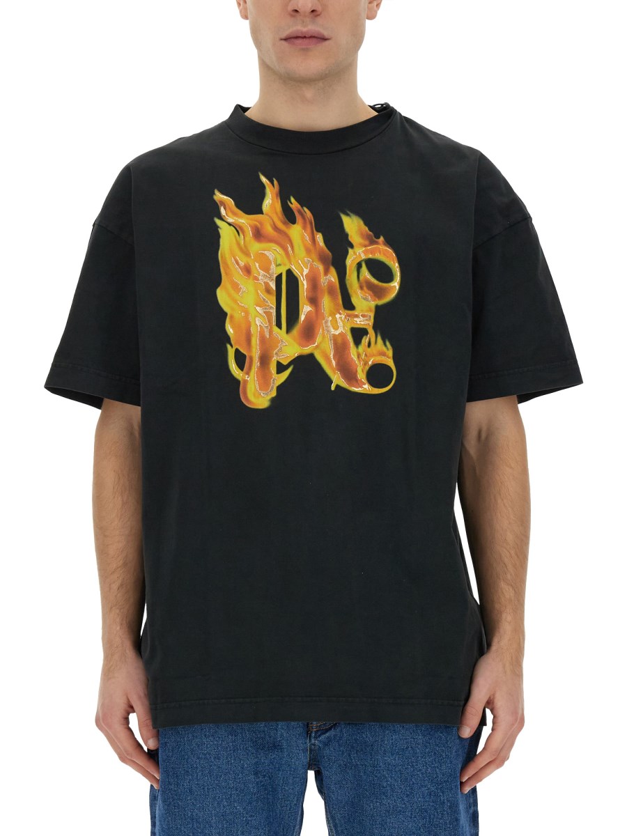 Scarpe / Italia / PALM ANGELS T-SHIRT CON STAMPA BURNING MONOGRAM IN JERSEY DI COTONE saldi