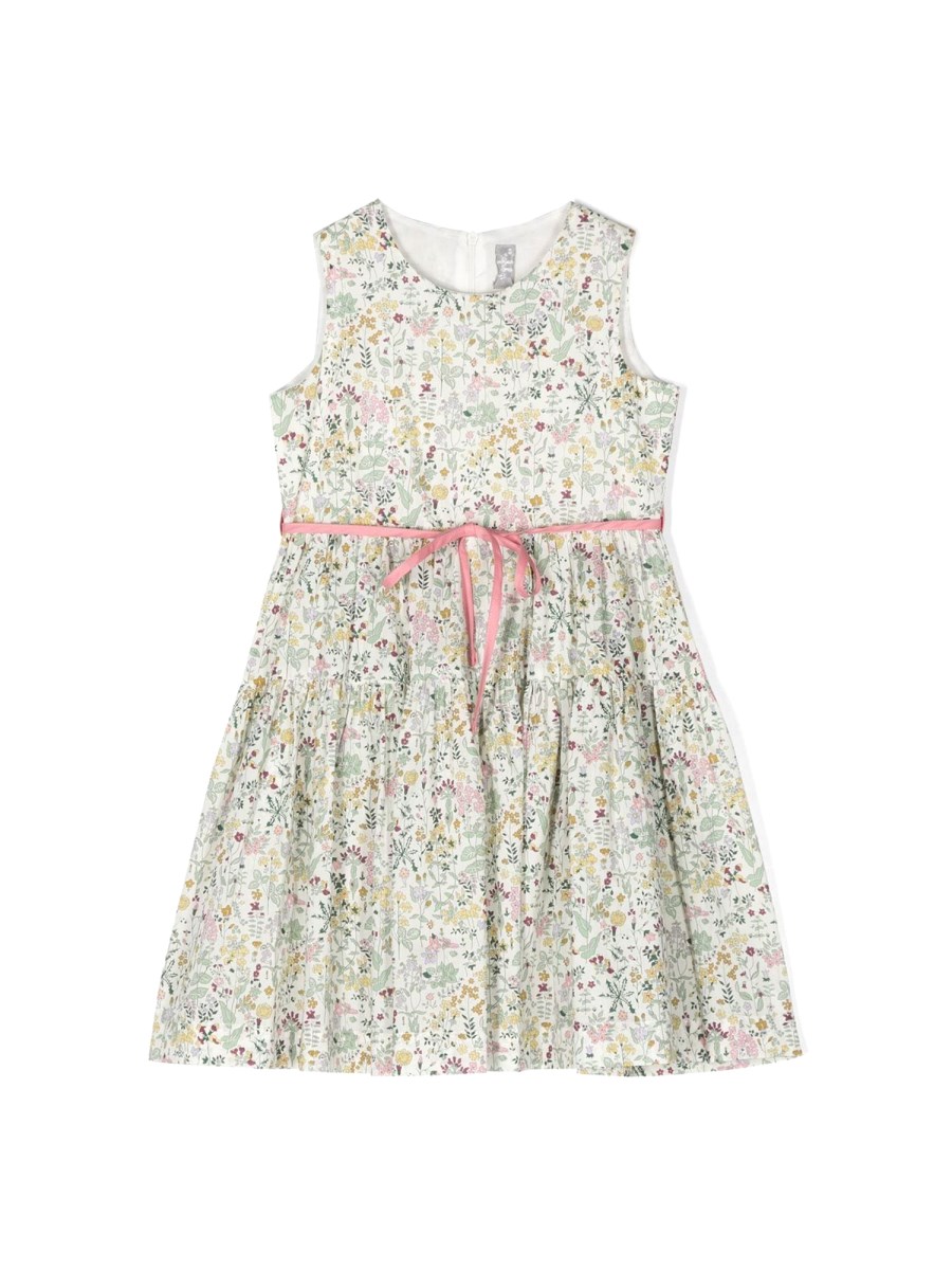 Questo abito senza maniche in cotone a fiori de Il Gufo è perfetto sia per le occasioni casual che per quelle formali. Presenta una scollatura arricciata, una lunghezza corta e ampia e un'ampia varietà di stampe floreali in colori vivaci. Questo abito è ideale per l'estate e per essere indossato tutti i giorni. L'abito è dotato di una bella cintura con dettagli coordinati sulla scollatura e sulle maniche.
