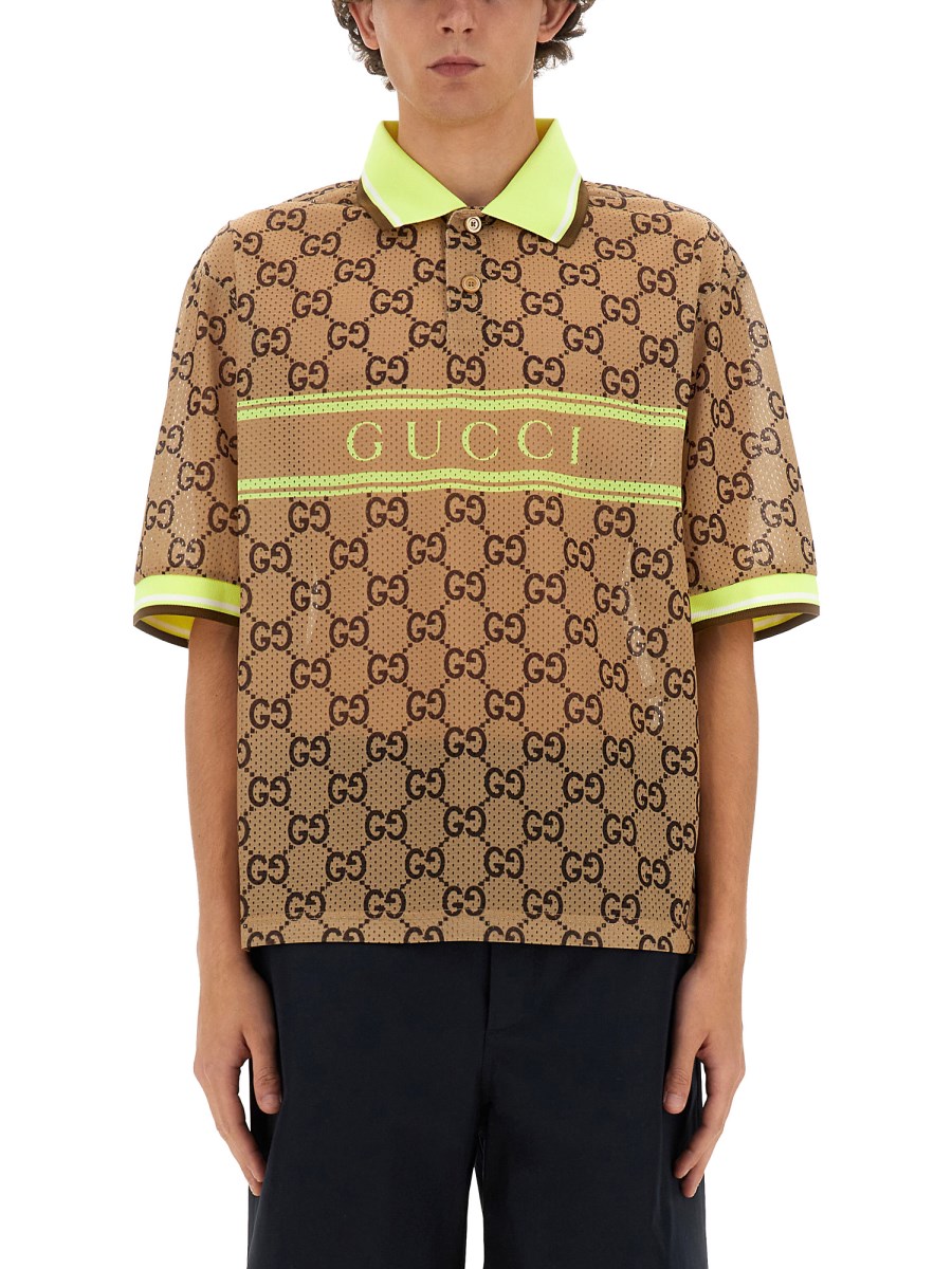 GUCCI POLO CON STAMPA GG IN RETE DI POLIESTERE saldi | Scarpe
