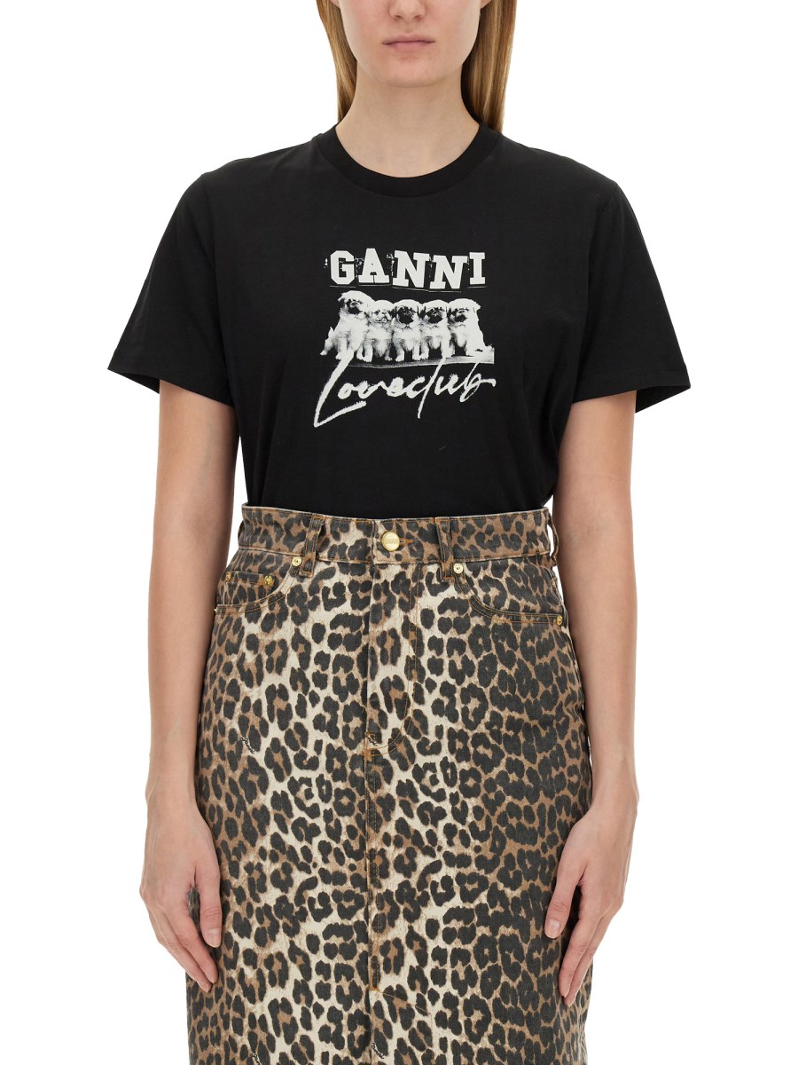 Scarpe / Italia / GANNI T-SHIRT IN JERSEY DI COTONE CON STAMPA LOGO saldi