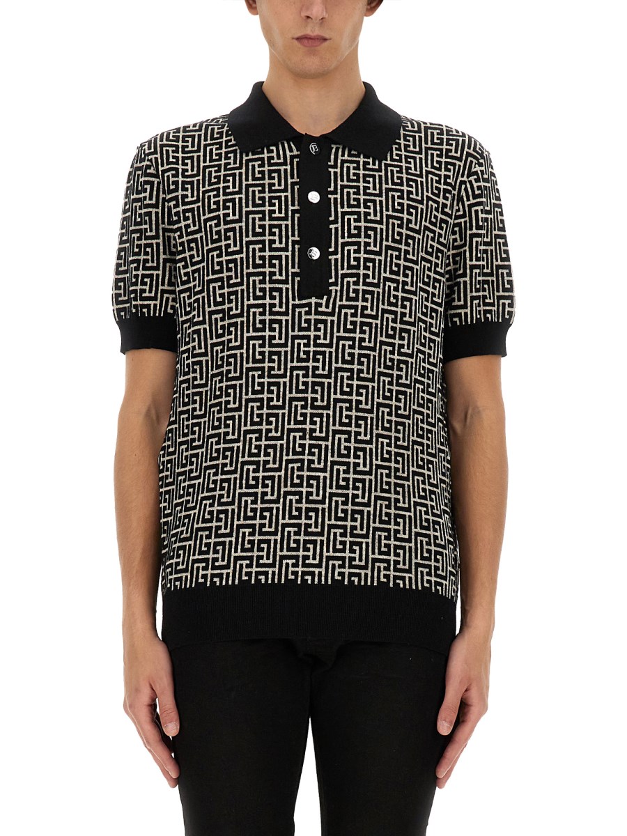 BALMAIN POLO MONOGRAM IN LANA MERINO