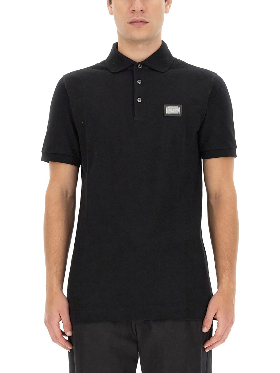 DOLCE & GABBANA POLO IN PIQUE DI COTONE CON PLACCA LOGO saldi | Scarpe