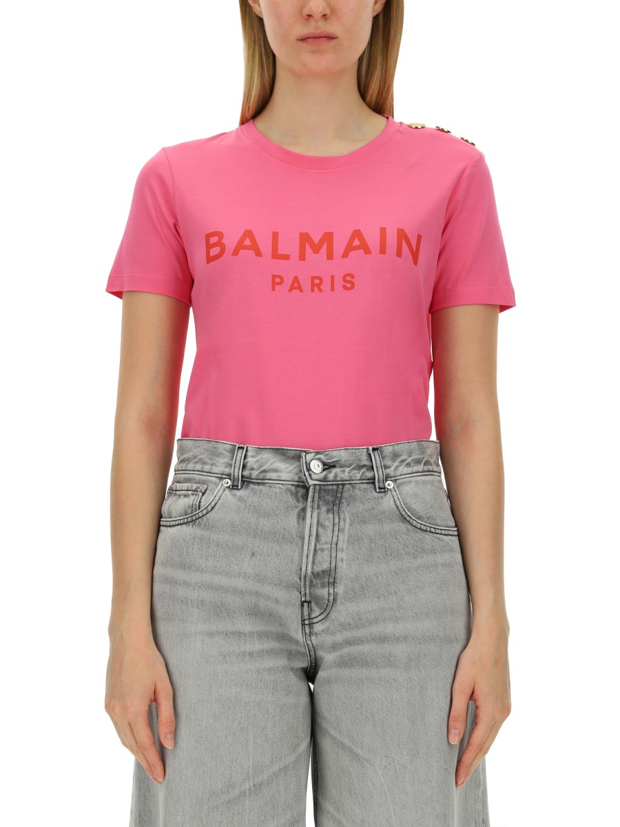 Scarpe / Italia / BALMAIN T-SHIRT IN JERSEY DI COTONE CON STAMPA LOGO saldi