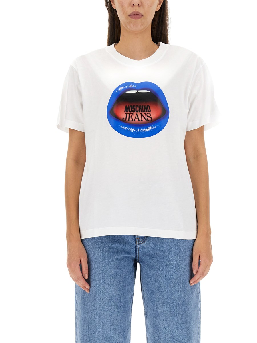 MOSCHINO JEANS T-SHIRT IN JERSEY DI COTONE CON STAMPA MOUTH PRINT saldi | Scarpe