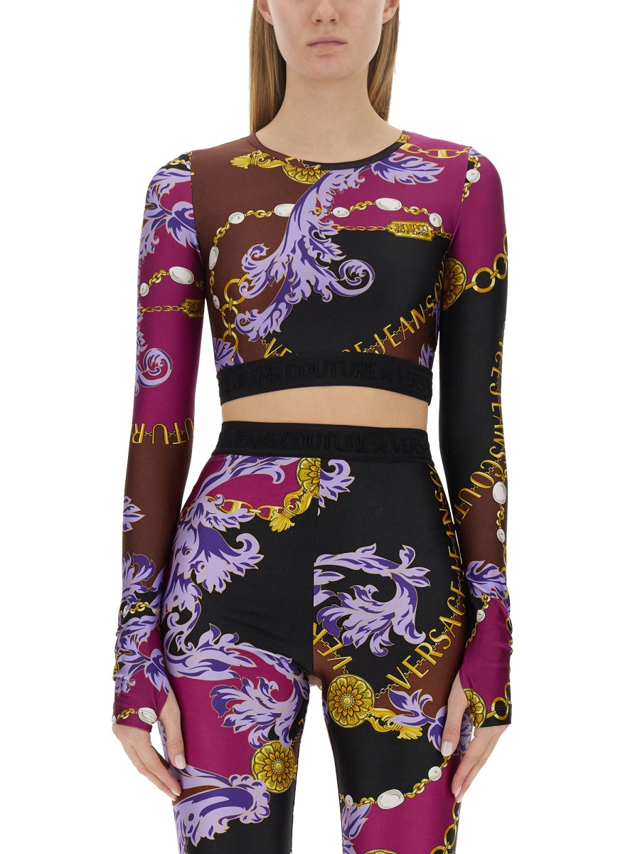 VERSACE JEANS COUTURE TOP CROPPED CHAIN COUTURE IN NYLON saldi | Scarpe