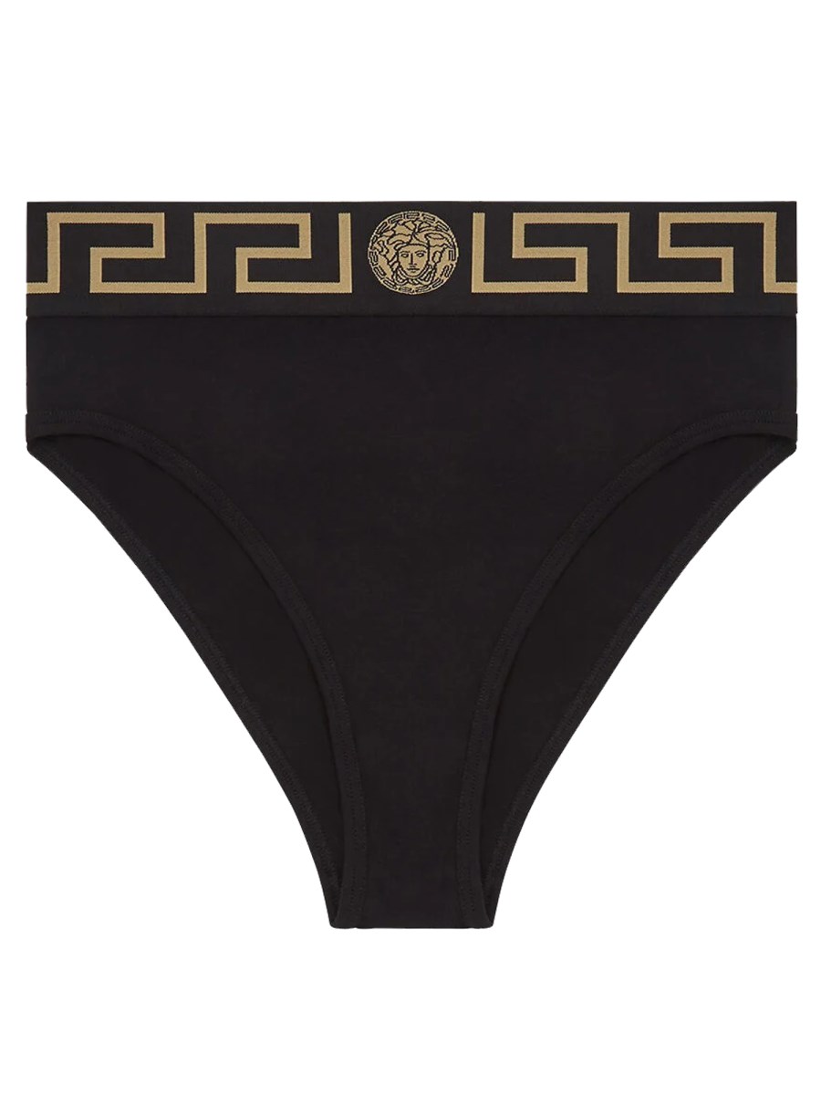 Ogni giorno è un buon giorno quando si indossano questi simpatici e comodi slip in cotone di Versace. Realizzati in cotone, la fascia è morbida e traspirante. Questi slip in cotone nero hanno uno stile classico con un motivo interessante. È un prodotto ideale per gli atleti, le persone attive e coloro che vogliono sentirsi bene con se stessi.