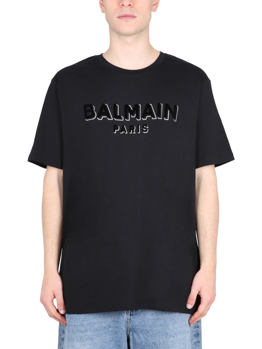 Scarpe / Italia / BALMAIN T-SHIRT IN COTONE CON LOGO FLOCCATO E METALLIZZATO saldi