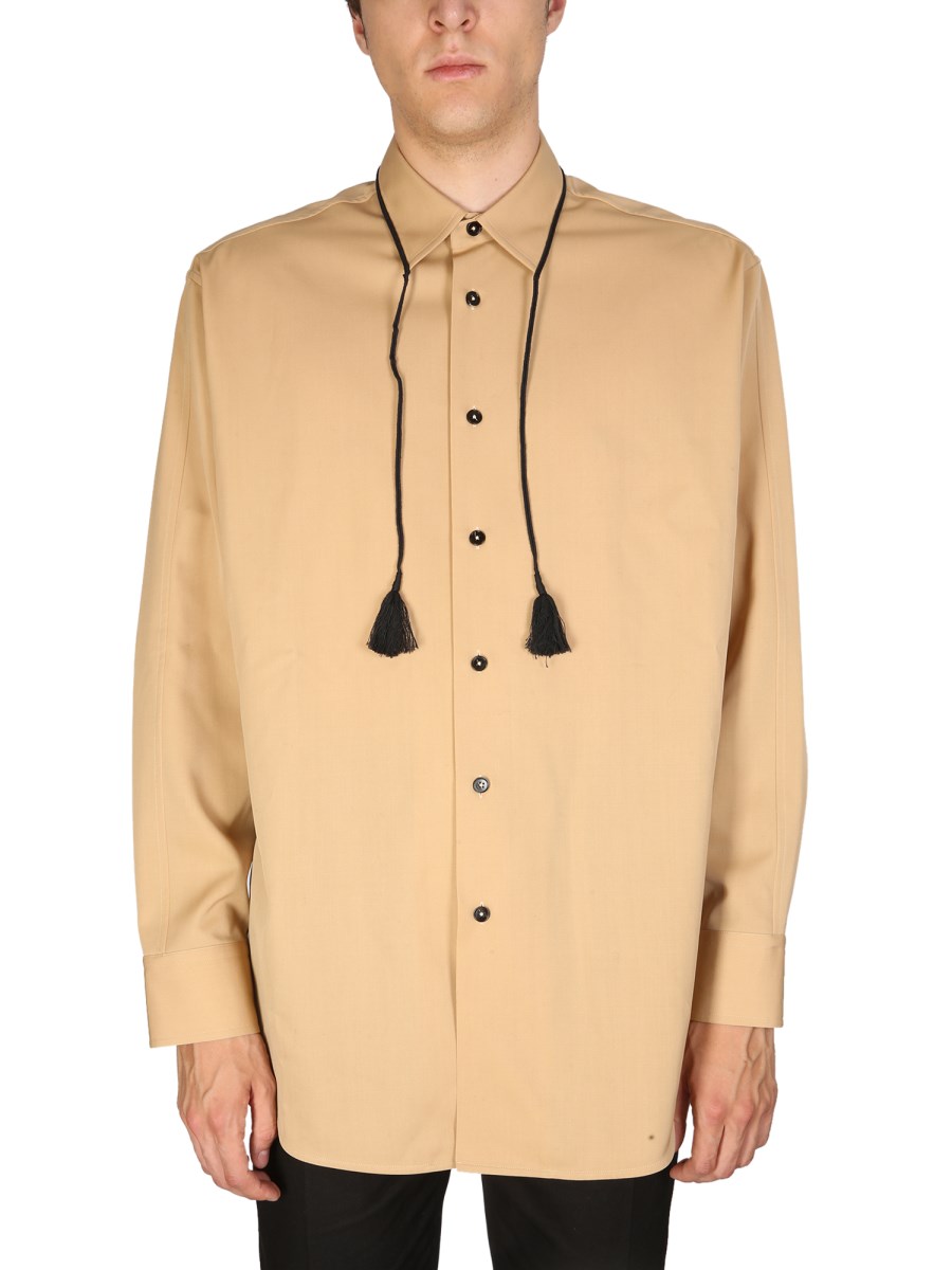 - COLLETTO DRITTO CLASSICO - CHIUSURA FRONTALE- BOXY FIT - 100% COTONE- MADE IN ITALY - IL MODELLO È ALTO 190 CM E INDOSSA TAGLIA 41