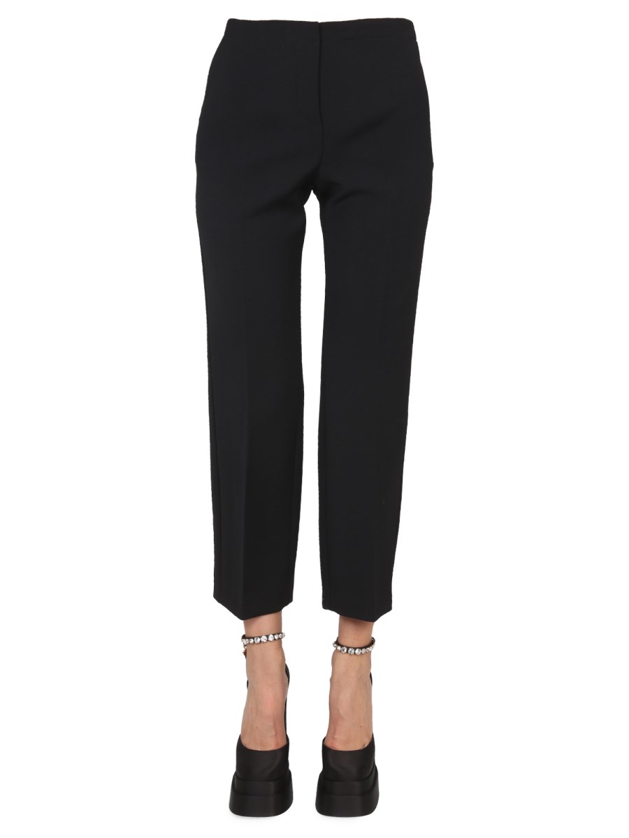 - CHIUSURA CON GANCIO E ZIP A SCOMPARSA- TAGLIO CROPPED- SLIM FIT- FONDO SVASATO- PIEGA CENTRALE- TASCHE LATERALI ALLA FRANCESE- 100% LANA VERGINE- LA MODELLA É ALTA 180 CM E INDOSSA LA TAGLIA 44 IT
