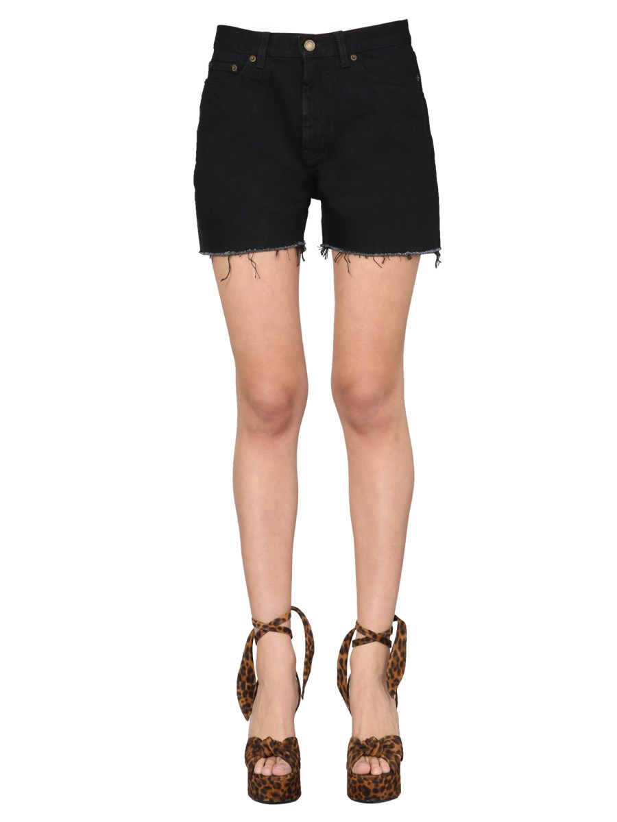 SAINT LAURENT SHORT IN DENIM DI COTONE CON ORLO A VIVO saldi | Scarpe