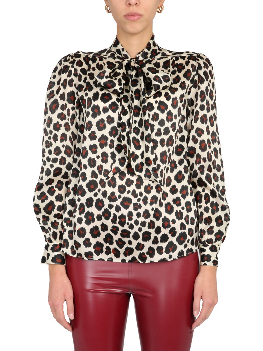 SAINT LAURENT CAMICIA CON STAMPA LEOPARDATA IN MUSSOLA DI SETA saldi | Scarpe
