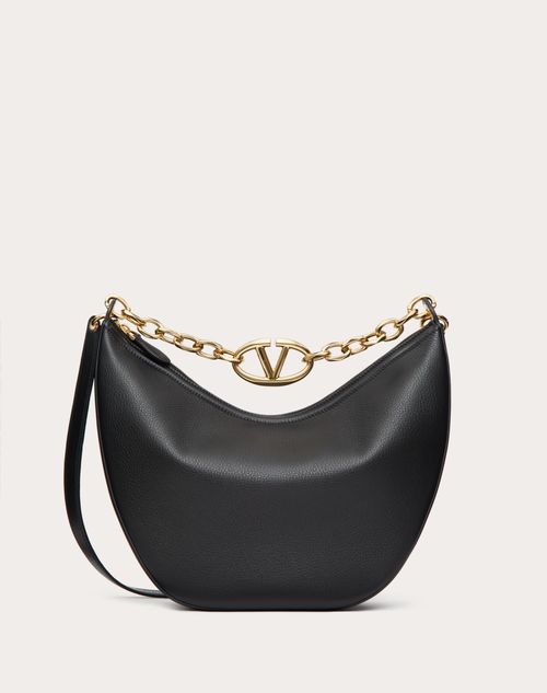 Hobo media Valentino Garavani VLogo Moon Bag in vitello granato con catena dettagliata da elemento VLogo Signature metallico. La borsa può essere indossata a spalla/cross-body o a mano grazie alla catena ed alla tracolla in pelle amovibile.- Catena e parti metalliche finitura dorata- Tracolla in pelle amovibile- Chiusura a zip- Fodera in nappa. Interno: una tasca piatta- Altezza (luce) tracolla: 62 cm- Altezza (luce) catena: 28 cm- Dimensioni: W32,5xH34,5xD11 cm- Made in Italy