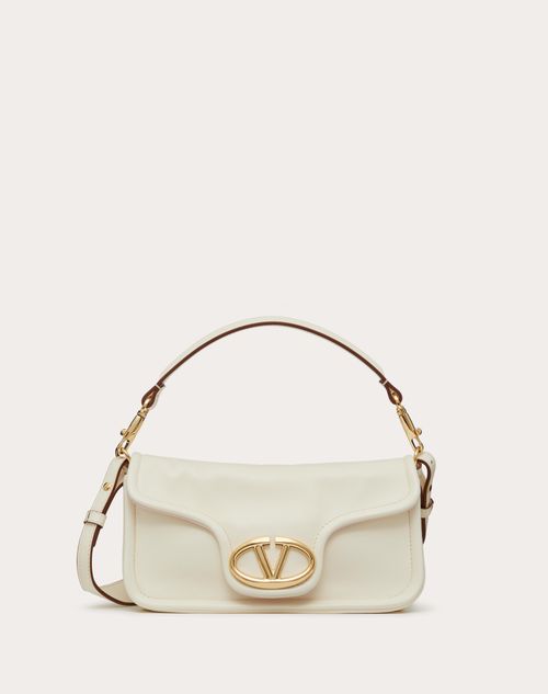 Borsa a spalla media Valentino Garavani VLogo 1960 in nappa con elemento VLogo Signature metallico. La borsa può essere indossata a spalla/cross-body o a mano grazie al manico e alla tracolla in pelle amovibile.- Parti metalliche finitura dorata- Chiusura magnetica- Manico in pelle amovibile- Tracolla in pelle regolabile e amovibile- Fodera in nappa. Interno: una tasca con zip e uno scomparto- Altezza (luce) tracolla: 54,5 cm- Altezza (luce) manico: 12,5 cm- Dimensioni: W26xH13xD9 cm- Made in Italy