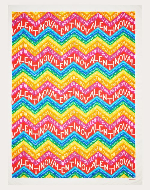 Pareo con Pochon Escape in Cotone e Seta - Composizione: 72% cotone, 28% seta - Stampa Valentino Chevron24 - Dimensioni: 140 x 180 cm - Lavare a Secco - Made in Italy
