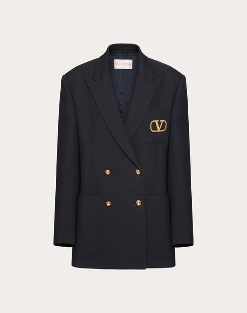 Giacca in Formal Natte' - Doppiopetto - Chiusura frontale con bottoni - Formal Natte' (100%Lana Vergine) - Foderata in Jacquard Toile Iconographe (100% Cupro) - Lunghezza 77 cm da punto spalla per la taglia 40 IT - Lunghezza manica 83 cm da centro dietro per la taglia 40 IT - La modella è alta 176 cm e indossa una taglia 40 IT - Made in ItalyIl look è completato con una borsa Valentino Garavani Ohval e scarpe Valentino Garavani VLogo Locker.
