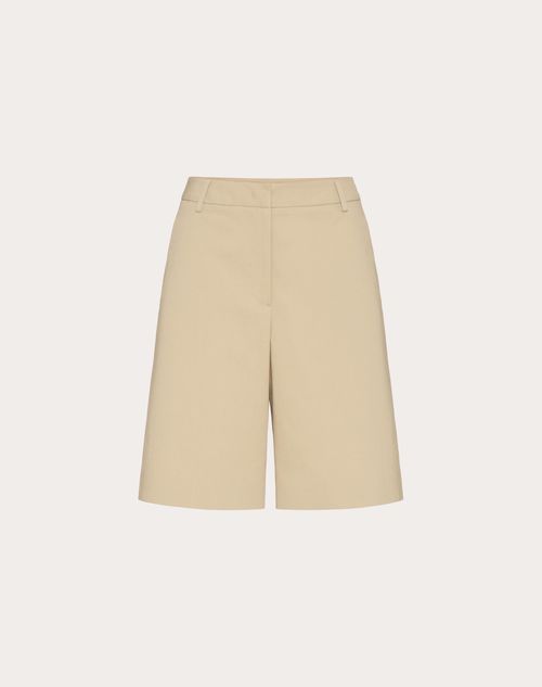 Bermuda in Diagonal Cotton Linen - Chiusura zip e gancino - Diagonal Cotton Linen (77%Cotone, 23%Lino) - Sfoderati - Lunghezza 50,5 cm da punto vita per la taglia 40 IT - Fondo gamba 31 cm per la taglia 40 IT - Lunghezza interna della gamba 27 cm per la taglia 40 IT - La modella è alta 176 cm e indossa una taglia 40 IT - Made in ItalyIl look è completato con una borsa Valentino Garavani Locò e scarpe Valentino Garavani Rockstud.