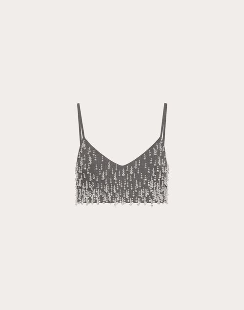 Top in Active Gabardine Ricamato - Chiusura con zip - Active Gabardine (98%Lana, 2%Elastan) - Foderato in Habotai (100% Seta) - Lunghezza 37 cm da punto spalla per la taglia 40 IT - La modella è alta 176 cm e indossa una taglia 40 IT - Made in ItalyIl look è completato con una borsa Valentino Garavani VLOGO MOON e scarpe Valentino Garavani Romance Bow.