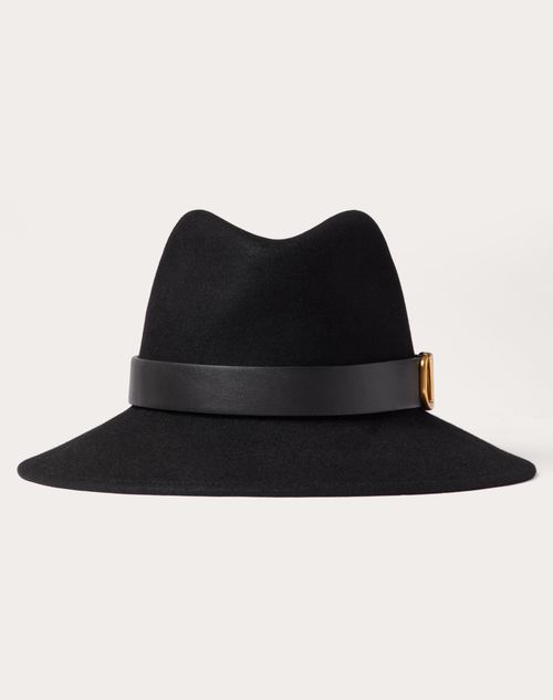 Cappello Valentino Garavani fedora Vlogo Signature in tessuto lapin e vitello- Composizione: lapin e nastro in vitello- Dettaglio in metallo VLogo con finitura in ottone anticato- Disponibile in taglie XS (55) - S (56) - M (57)- L (58)- Made in Italy