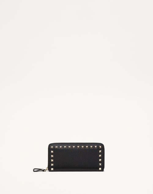 Portafoglio con zip Rockstud Valentino Garavani in Vitello granato - Borchie finitura Platino - Chiusura a zip- Tre scomparti a soffietto divisi da una tasca portamonete con cerniera e una tasca piatta. Dodici vani porta carte e due tasche piatte. - Dimensioni: W19xH10xD2,5cm - Made in Italy