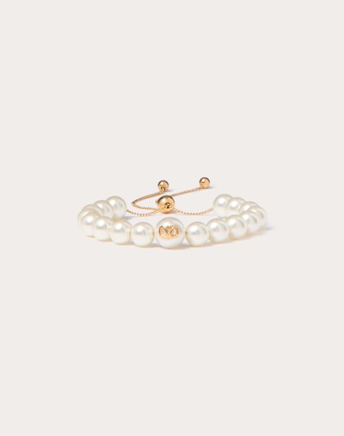 Bracciale VLogo Signature in Metallo e Perle in Resina - Finitura in Colore Oro 18- Altezza: 1 cm - Chiusura regolabile con gommino scorrevole- Diametro Perle: 8 e 10 mm - Dimensione Vlogo: 4,5x7 mm - Made in Italy