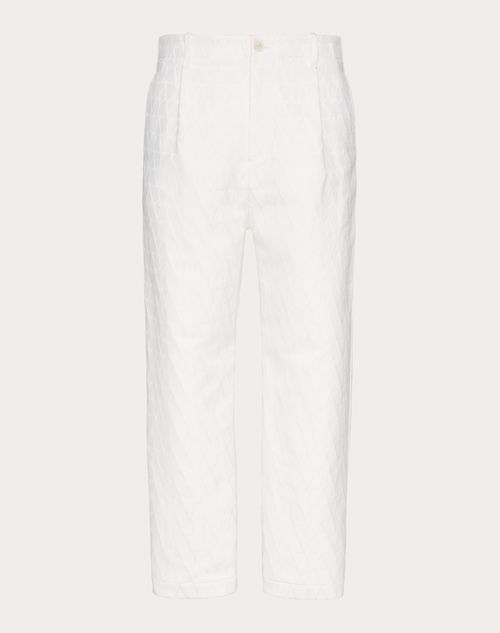 Pantalone Valentino in canvas di cotone con motivo Toile Iconographe all over- Regular fit- Motivo Toile Iconographe in jacquard all over- Due tasche laterali- Due tasche sul retro- Composizione: 55% Cotone, 45% Poliestere- Lunghezza: 99 cm in taglia 46 IT- Fondo gamba: 18,5 cm in taglia 46 IT- Il modello è alto 187 cm e indossa una taglia 46 IT- Made in ItalyIl look è completato con scarpe Valentino Garavani One Stud.