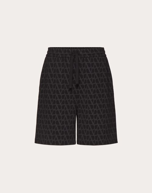 Bermuda Valentino in cotone con stampa Toile Iconographe all over- Regular fit- Stampa Toile Iconographe all over- Coulisse in vita- Due tasche laterali- Una tasca sul retro- Composizione: 100% Cotone- Lunghezza: 54 cm in taglia M- Fondo gamba: 34 cm in taglia M- Il modello è alto 187 cm e indossa una taglia M- Made in ItalyIl look è completato con scarpe Valentino Garavani Freedots.