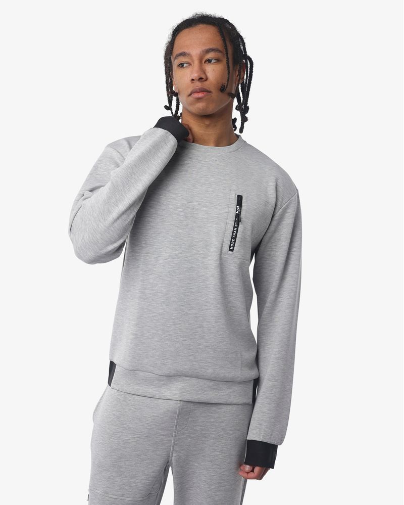 Felpa girocollo e dettaglio tasca logata posizionata all'altezza del petto.