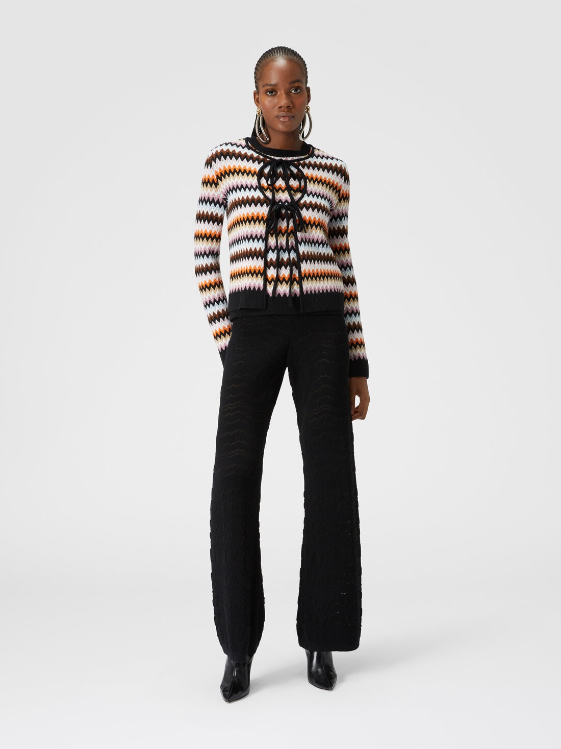 M Missoni Cardigan in lana zig zag con profili a contrasto