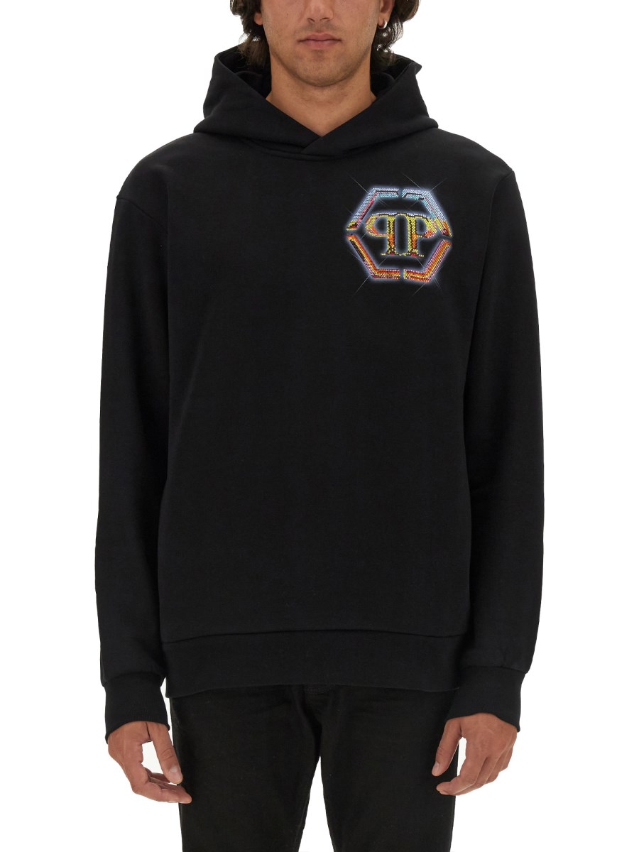 PHILIPP PLEIN FELPA IN COTONE CON STAMPA LOGO