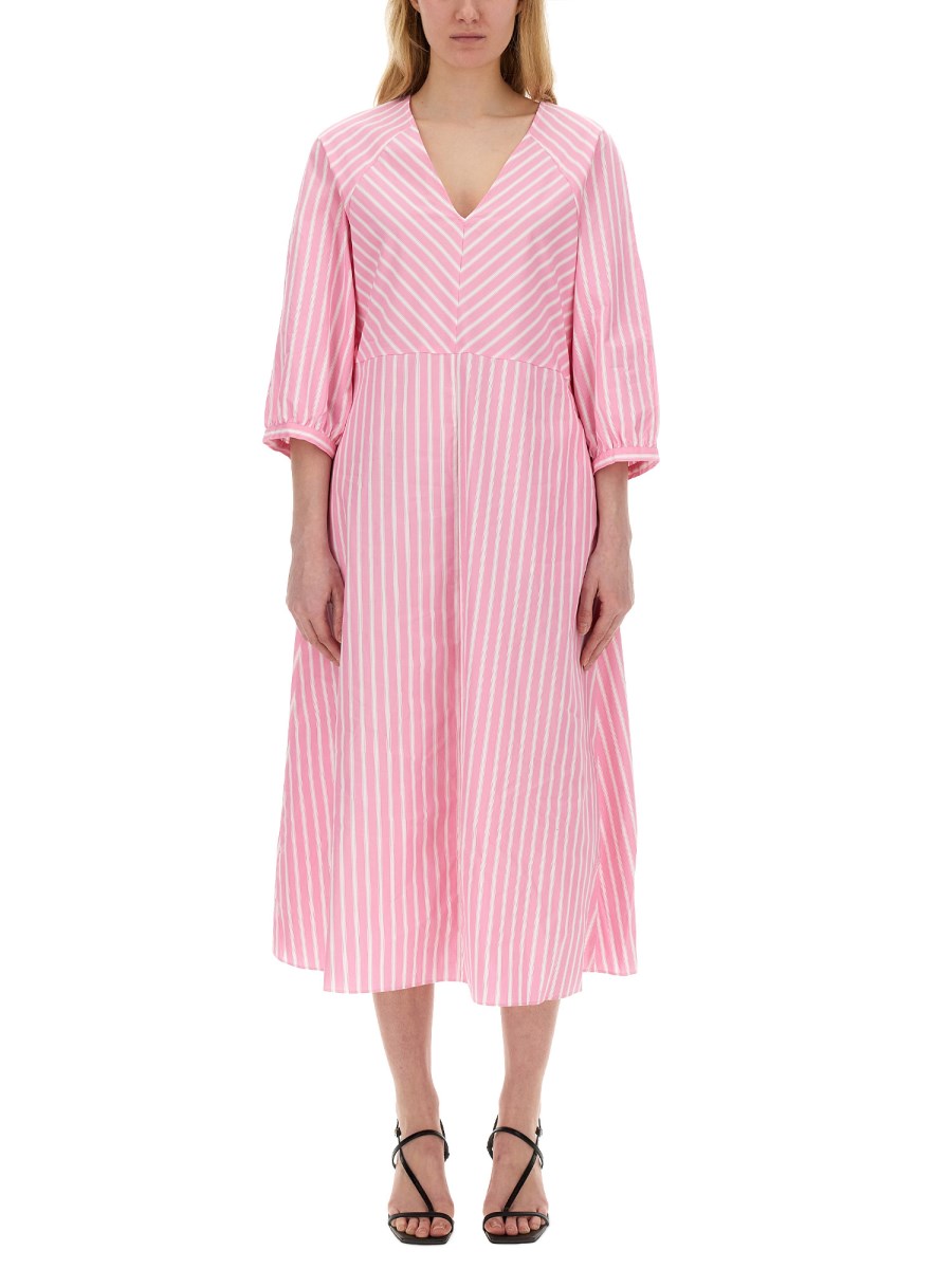 Vi presentiamo l'affascinante abito rosa e bianco di Baum Und Pferdgarten con scollo a V e manica intera in cotone! Questo abito elegante e femminile è perfetto per ogni occasione. Realizzato in cotone di alta qualità, offre una vestibilità comoda e traspirante che vi farà sentire fresche per tutto il giorno. La splendida silhouette ad A si adatta a tutte le forme del corpo, creando un look elegante e grazioso. La combinazione di colori rosa e bianco aggiunge un tocco di dolcezza e raffinatezza a questo abito.