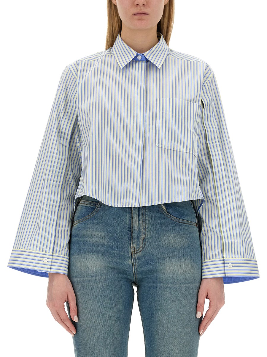 VICTORIA BECKHAM CAMICIA CROPPED FIT CON MOTIVO RIGA IN POPELINE DI COTONE