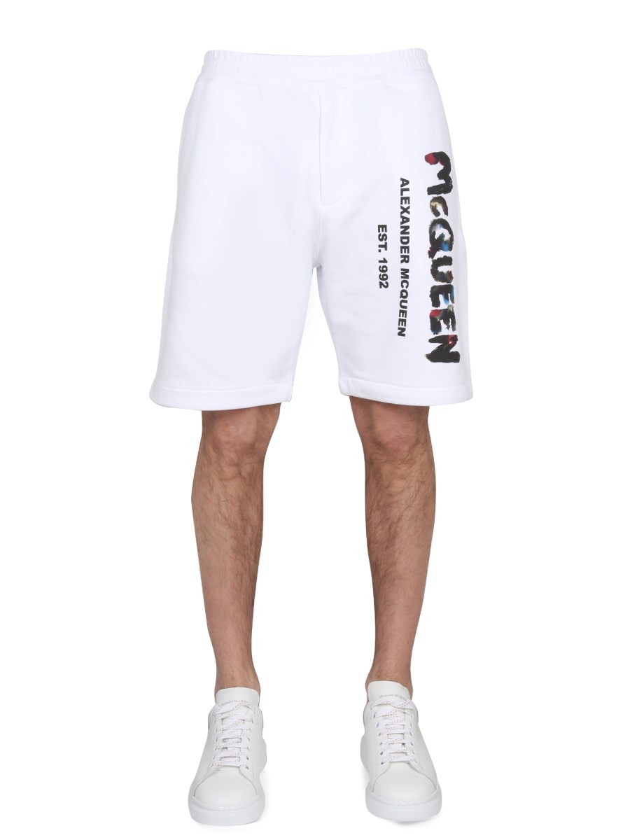 ALEXANDER McQUEEN BERMUDA CON STAMPA LOGO GRAFFITI ACQUARELLO saldi | Scarpe