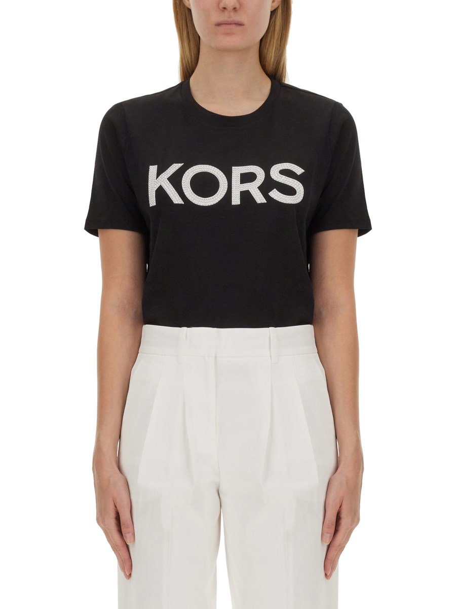 Scarpe / Italia / MICHAEL BY MICHAEL KORS T-SHIRT IN JERSEY DI COTONE CON LOGO BORCHIATO saldi