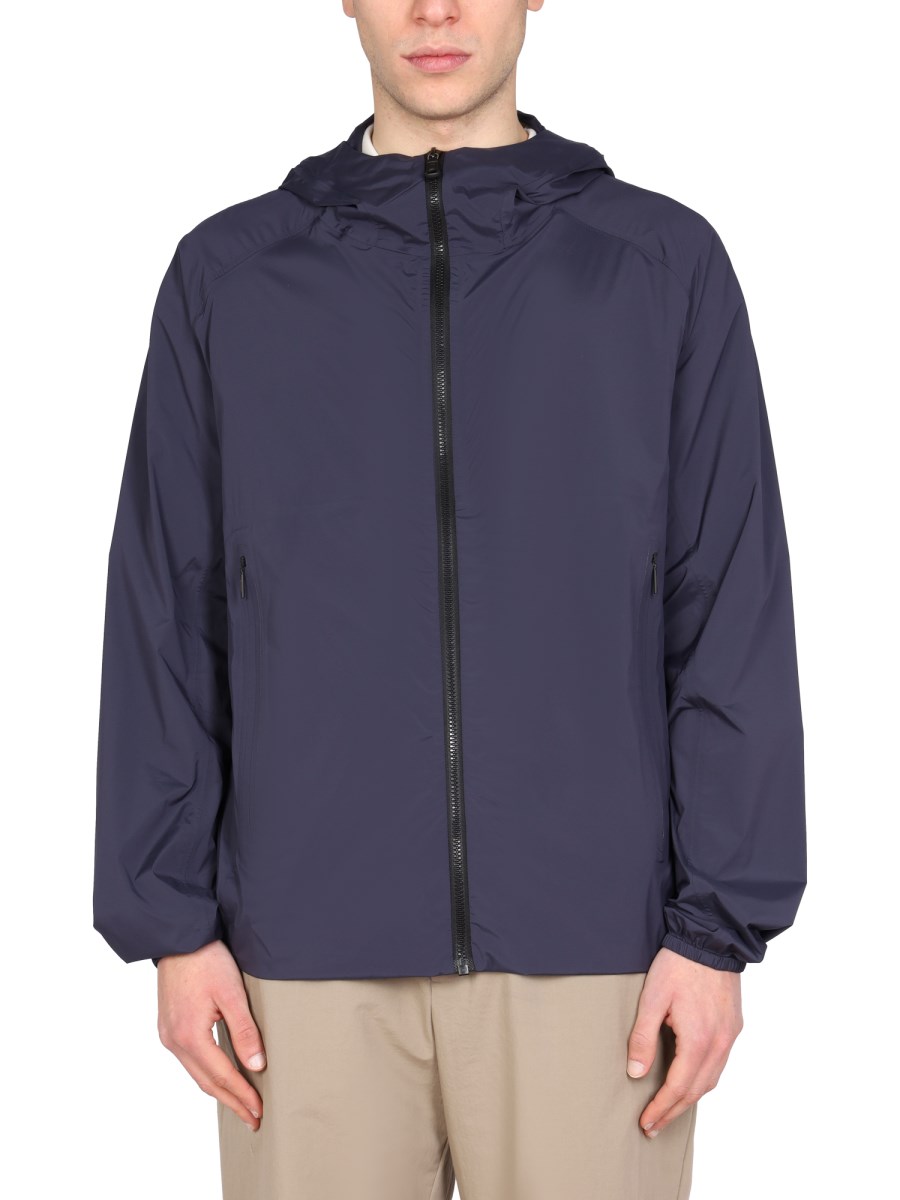 - COLLO ALTO CON CAPPUCCIO- CHIUSURA FRONTALE CON ZIP- DUE TASCHE LATERALI CON ZIP- 85% POLIAMMIDE, 15% ELASTANE- IL MODELLO È ALTO 185 CM E INDOSSA LA TAGLIA L