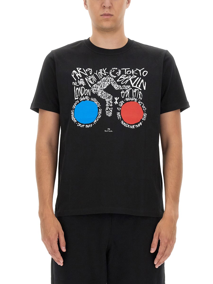 PS BY PAUL SMITH T-SHIRT CON STAMPA CYCLIST IN JERSEY DI COTONE saldi | Scarpe