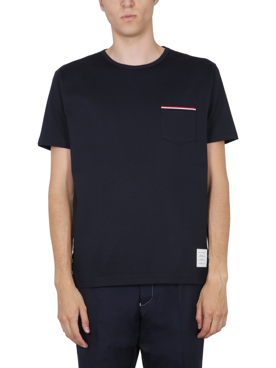 THOM BROWNE T-SHIRT IN JERSEY DI COTONE CON TASCHINO