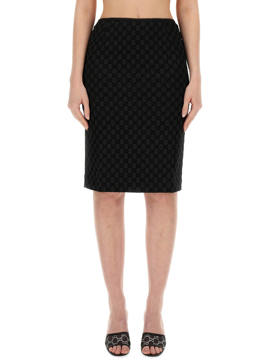 Scarpe / Italia / GUCCI GONNA IN DUCHESSE DI SETA CON STAMPA GG saldi