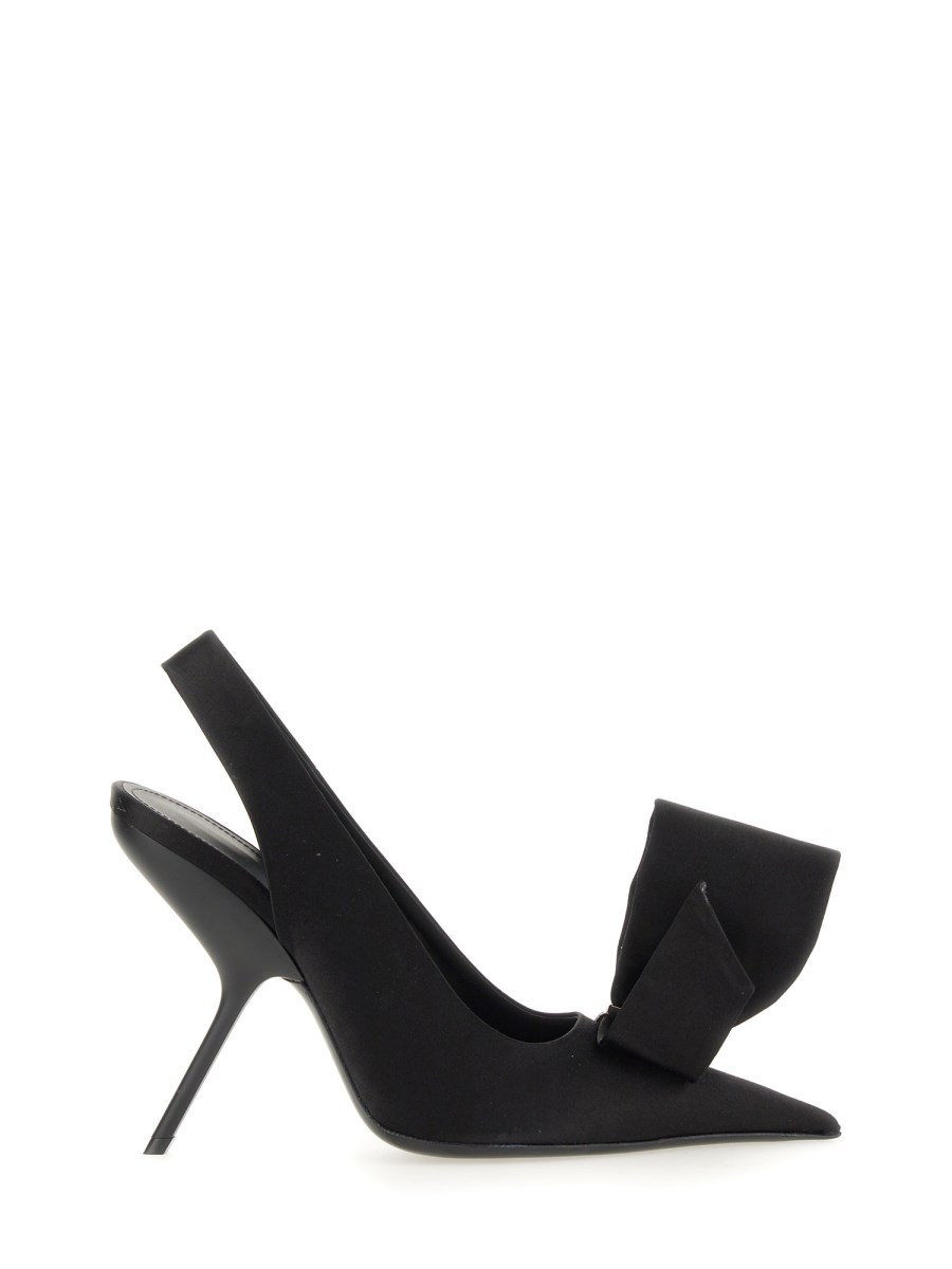 Slingback in raso lucido dal fascino femminile, decorata da un maxi fiocco asimmetrico sul davanti. La punta appuntita è completata dalla fibbia lucida con logo 3D e finitura dorata. Tacco sottile verniciato tono su tono, con forme ispirate all'iconica zeppa F. La tomaia è realizzata con una miscela di 72% di viscosa di provenienza responsabile e 28% di seta prodotta senza sostanze chimiche, le suole sono in pelle prodotta nel rispetto di rigorosi requisiti ambientali e il filo per cucire è realizzato al 100% con poliestere riciclato post-consumo.