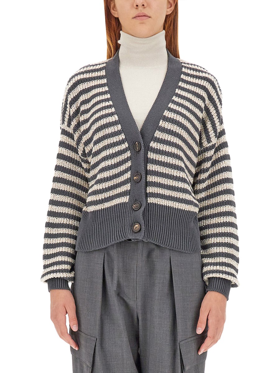 BRUNELLO CUCINELLI CARDIGAN IN COTONE A RIGHE CON MICRO PAILLETTES saldi | Scarpe