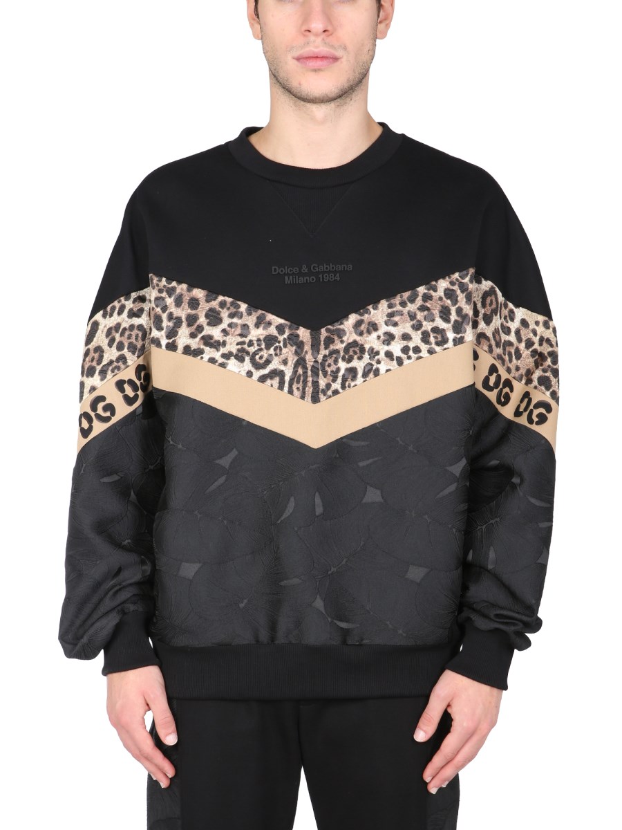 Scarpe / Italia / DOLCE & GABBANA FELPA GIROCOLLO IN MISTO VISCOSA CON INTARSIO STAMPA ANIMALIER saldi