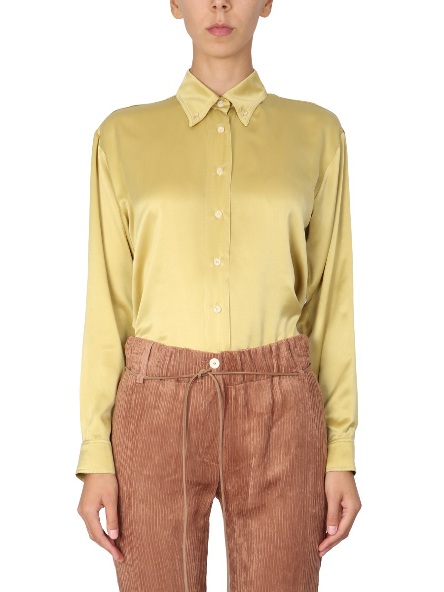composizione- COLLETTO BUTTON-DOWN- CHIUSURA FRONTALE CON BOTTONI- POLSINI CON BOTTONI- INTERNO SFODERATO- 100% SETA- MADE IN ITALY- LA MODELLA É ALTA 180 CM E INDOSSA LA TAGLIA 40 IT