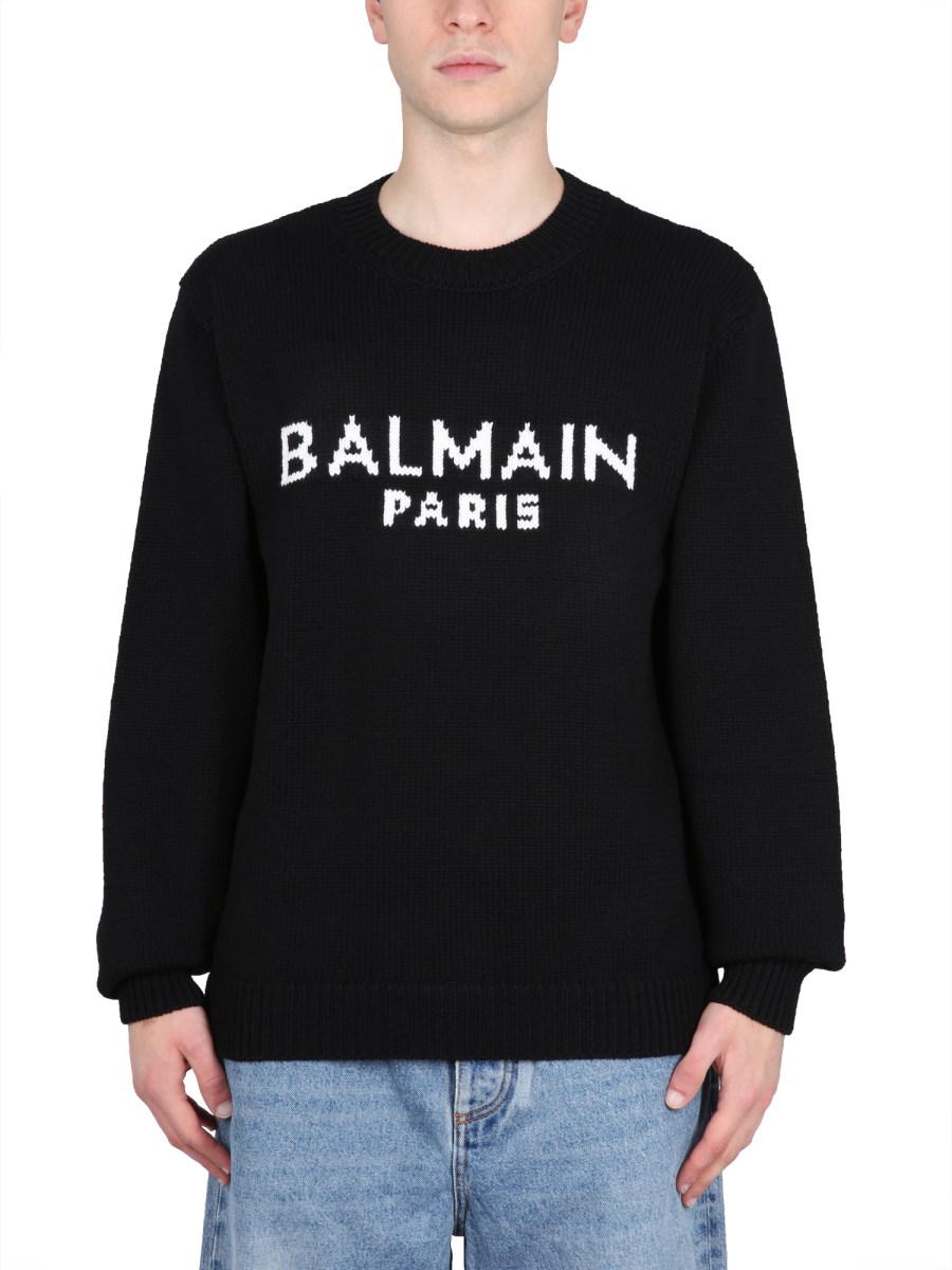 Scarpe / Italia / BALMAIN MAGLIA IN COTONE CON INTARSIO LOGO saldi