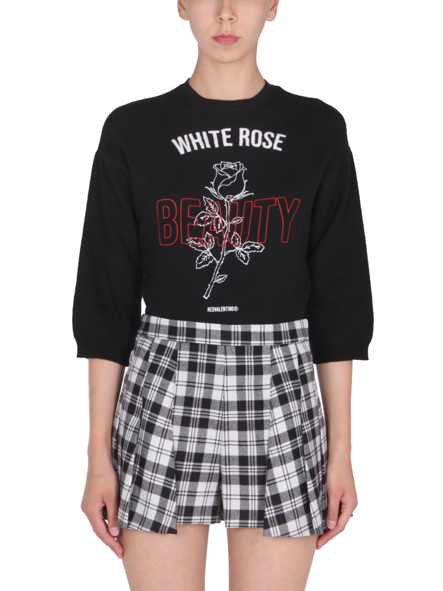 Scarpe / Italia / RED VALENTINO MAGLIA GIROCOLLO IN LANA CON RICAMO ROSA saldi