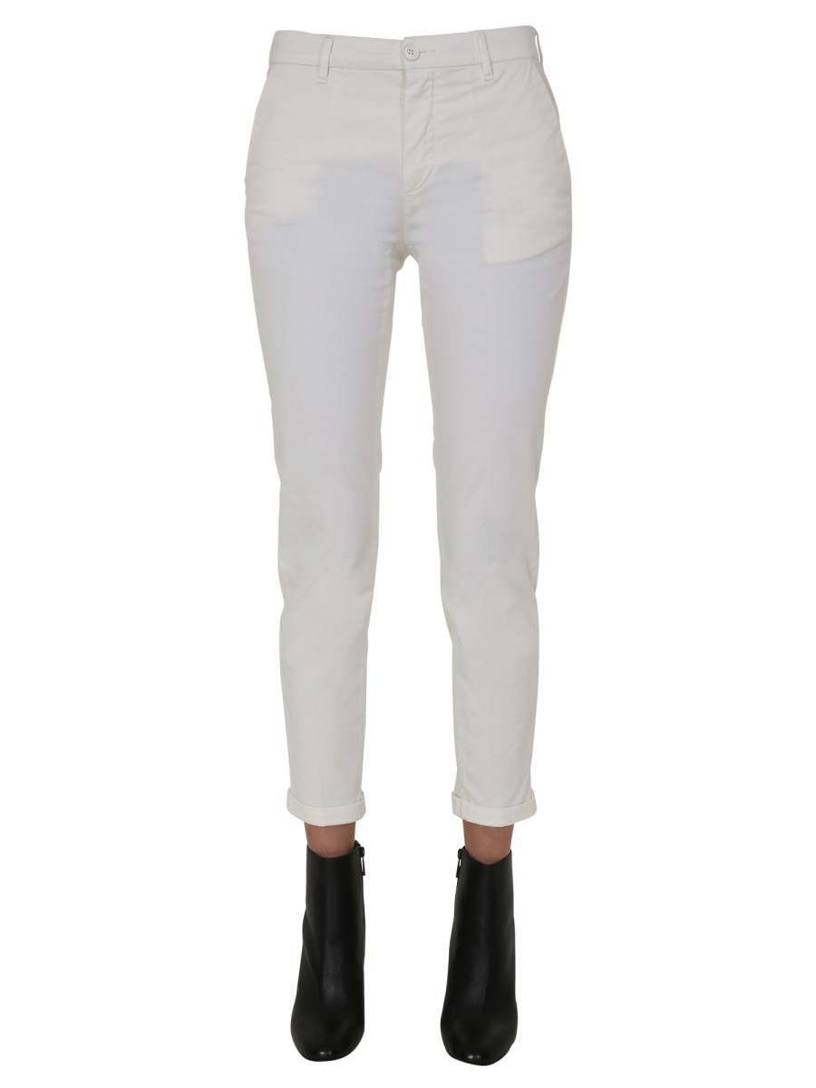 - CHIUSURA CON ZIP E BOTTONE- DUE TASCHE LATERALI E DUE POSTERIORI A FILETTO- PASSANTI PER CINTURA- FONDO: 15 CM- FONDO CON RISVOLTO- 98% COTONE, 2% ELASTAN - LA MODELLA È ALTA 178 CM E INDOSSA LA TAGLIA 40 IT