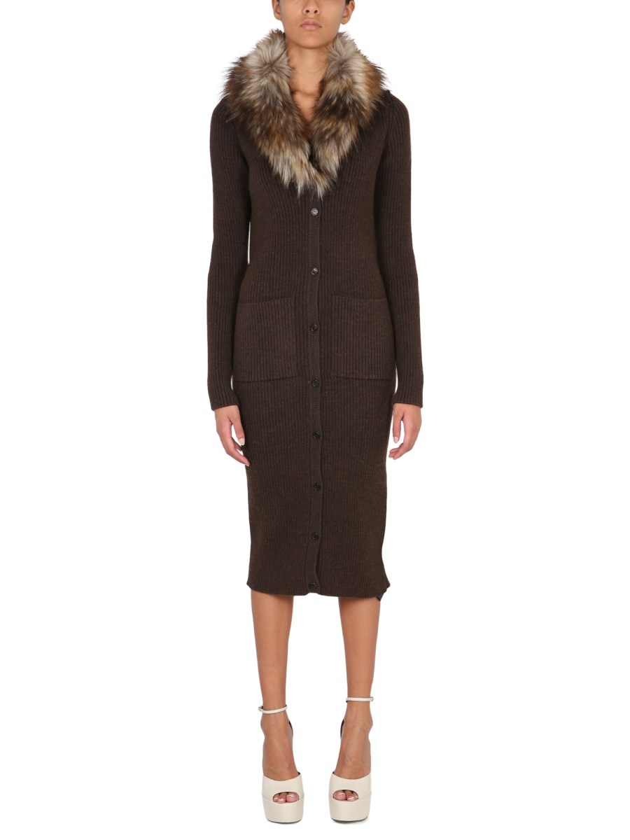 SAINT LAURENT ABITO CARDIGAN LUNGO IN MAGLIA DI LANA A COSTE