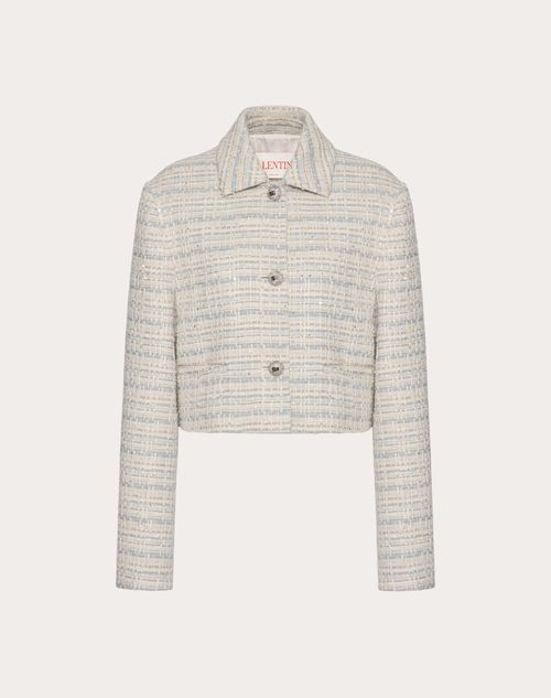 Giacca in Delicate Tweed - Dettaglio bottoni gioiello - Delicate Tweed (72%Cotone, 14%Poliestere, 9%Viscosa, 5%Poliammide) - Foderata in Jacquard Toile Iconographe (100% Cupro) - Lunghezza 48 cm da punto spalla per la taglia 40 IT - Lunghezza manica 83 cm da centro dietro per la taglia 40 IT - La modella è alta 176 cm e indossa una taglia 40 IT - Made in ItalyIl look è completato con una borsa Valentino Garavani Rockstud Spike e scarpe Valentino Garavani VLogo Locker.