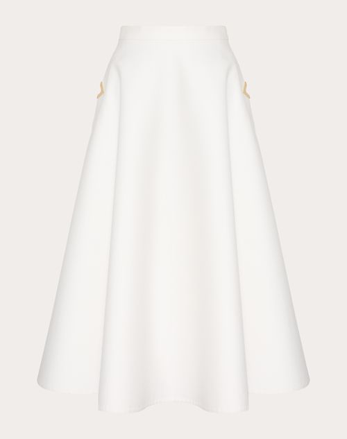 Gonna Midi in Light Double Splittable Gabardine - Dettaglio V Gold su tasche laterali - Chiusura laterale con zip invisibile - Light Double Splittable Gabardine (99%Cotone, 1%Poliammide) - Sfoderata - Lunghezza 87 cm da punto vita per la taglia 40 IT - La modella è alta 176 cm e indossa una taglia 40 IT - Made in ItalyIl look è completato con una borsa Valentino Garavani VLOGO MOON e scarpe Valentino Garavani VLogo Locker.