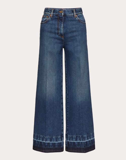 Jeans Valentino in Blue Washed Denim- Dettaglio V Gold su tasche posteriori- Blue washed Denim (100%Cotone)- Sfoderati- Lunghezza 97,5 cm da punto vita per la taglia 26 IT- Fondo gamba 31cm per la taglia 26 IT- Lunghezza interna della gamba 75 cm per la taglia 26 IT- La modella è alta 176 cm e indossa una taglia 26 IT- Made in ItalyIl look è completato con una borsa Valentino Garavani Locò e scarpe Valentino Garavani Freedots.