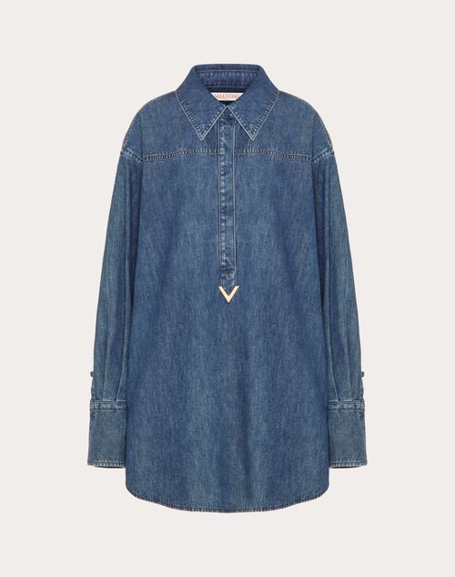Abito in Chambray Denim- Dettaglio V Gold frontale- Chambray Denim (100%Cotone)- Sfoderato- Lunghezza 86 cm da punto spalla per la taglia 40 IT- Lunghezza manica 83 cm da centro dietro per la taglia 40 IT- La modella è alta 176 cm e indossa una taglia 40 IT- Made in ItalyIl look è completato con una borsa Valentino Garavani Leather VLogo e scarpe Valentino Garavani Upvillage.
