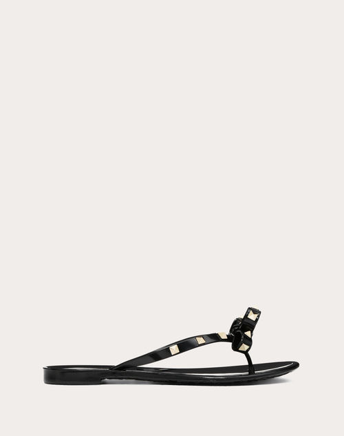 Ciabattina Valentino Garavani in pvc. Dettaglio fiocco con borchie finitura platino- Suola con motivo pizzo- Tacco 5mm/0,25''- Made in Italy
